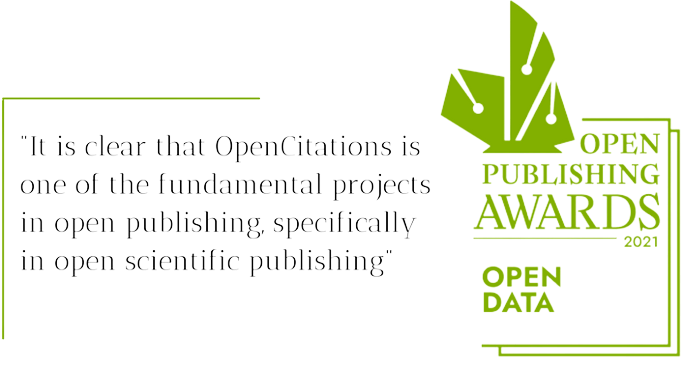 In December 2021, during the closing session of the FORCE2021 conference “Joining Forces to Advance the Future of Research Communication” (7-9 December), OpenCitations received the Open Publishing Award in Open Data, as an infrastructure that perfectly represents the open principles, from among the few semantic web and linked open data initiatives currently available in the scholarly communication landscape. The greatest honour for OpenCitations was receiving the following comment given on behalf of the jury panel, which included open source and scholarly communication experts: